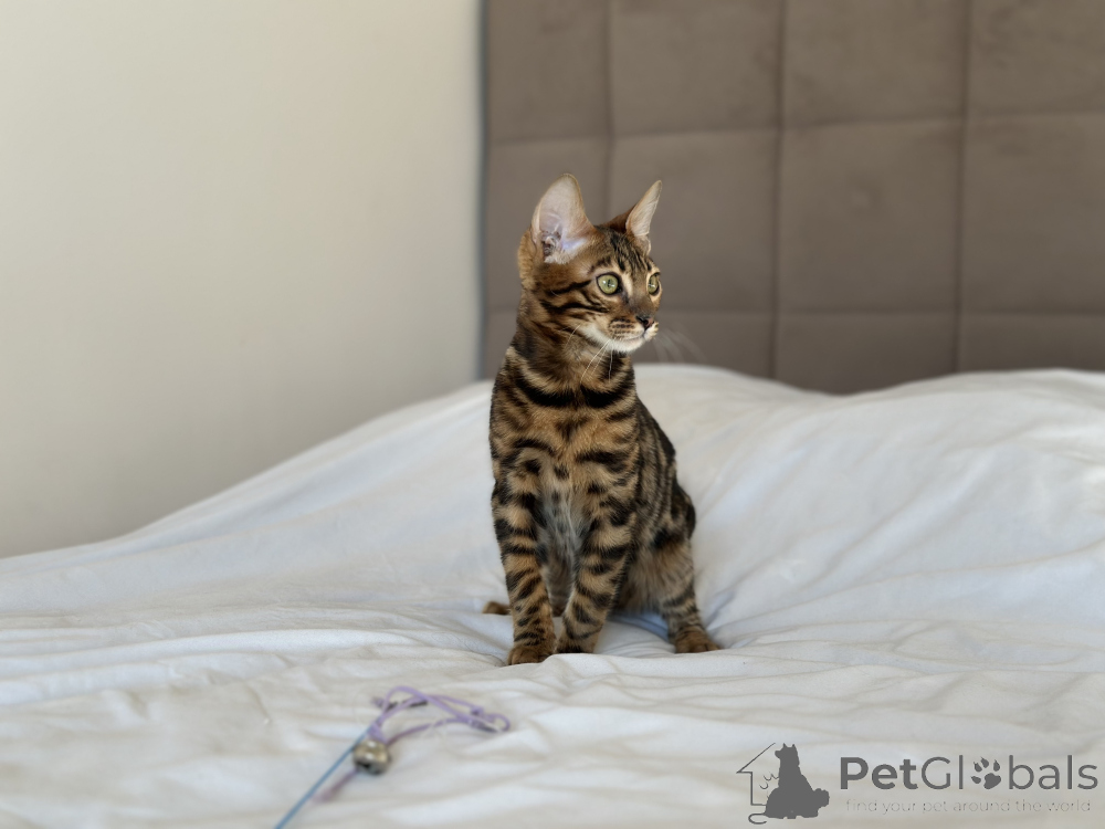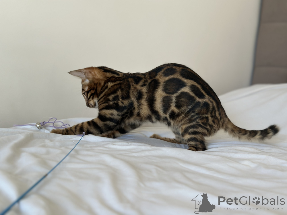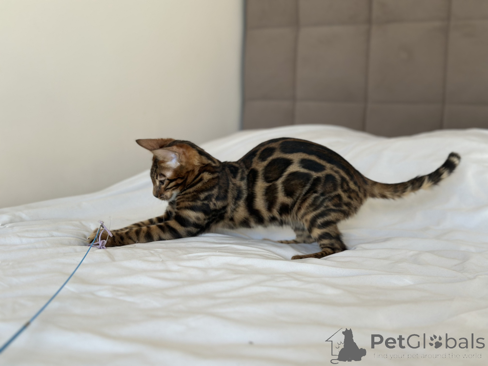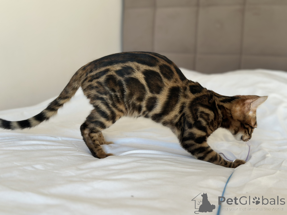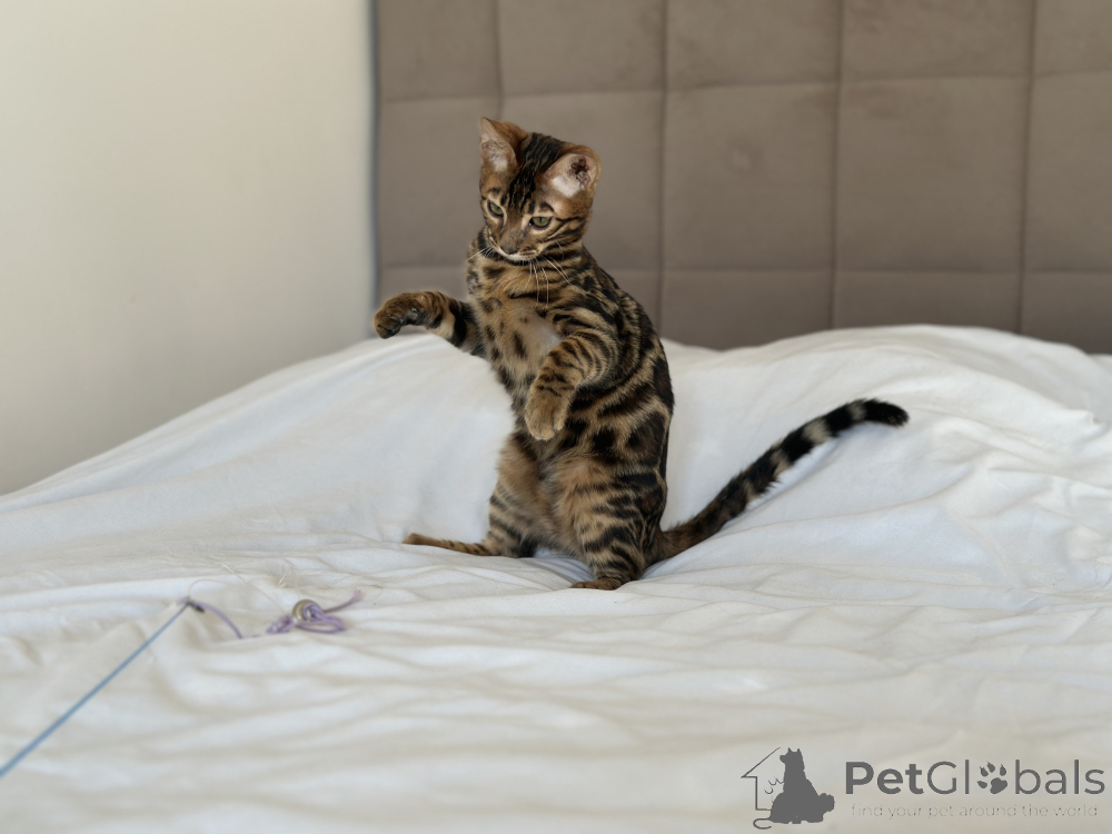 Питомник Бенгальских кошек предлагает шикарного парня в разведение или в качестве домашнего любимца. Готовит к переезду в новую семью шикарный Бенгальский мальчик Очаровательный малыш предлагается в разведение или в домашние любимцы Мальчик очень яркий и контрастный в отличном типе. Документы WCF, полный пакет. Привит по возрасту, чипирован и готов к переезду в новую семью.
