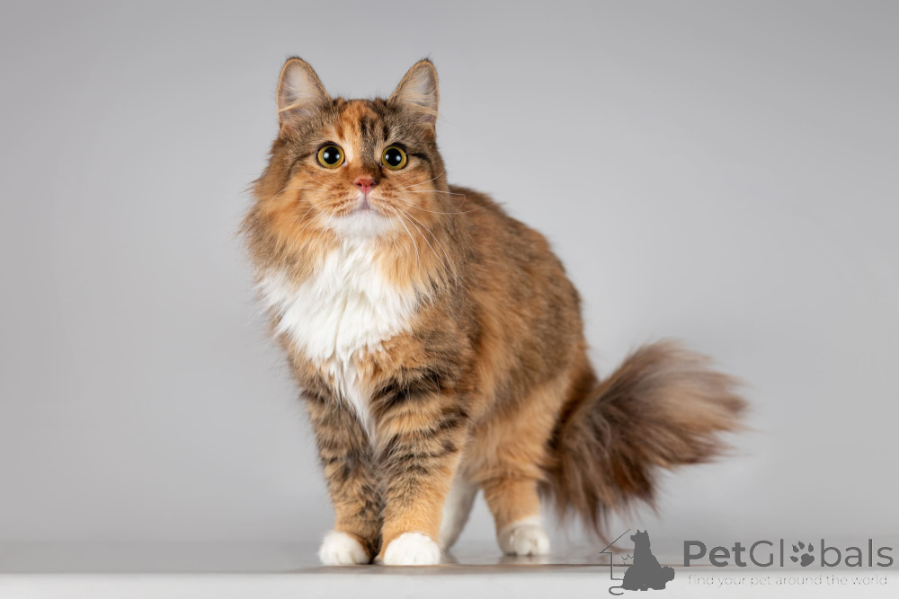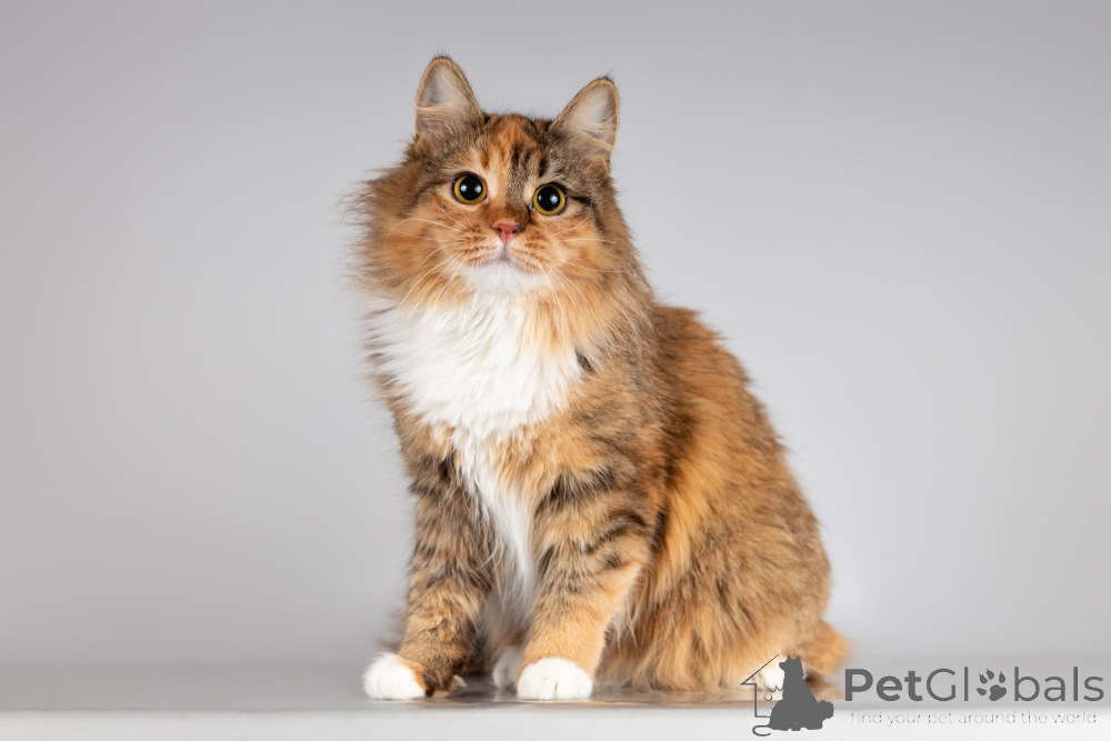 Юная кошечка Фиона как нежный пушистый цветочек до того красивая и милая! У неё миниатюрное сложение, а густая шелковая шубка счастливой расцветки так и просит её погладить.Фиона ласковая и разговорчивая кошечка, которая будет встречать Вас с работы и уютно мурлыкать.
