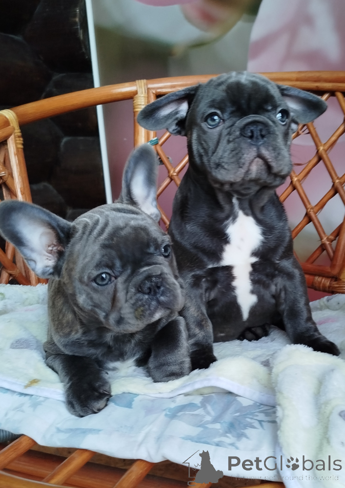 Красивые малыши французский бульдог в голубом окрасе мальчики. Д.Р.19.10.25.Папа чемпион Белоруссии.Малыши имеют хорошие породные данные, богатую генетику окрасов.Щенки вакцинированы и осмотрены , ветпаспорт, родословная у родителей.Ласковые, игривые, любознательные малыши растут в любви и ласки.