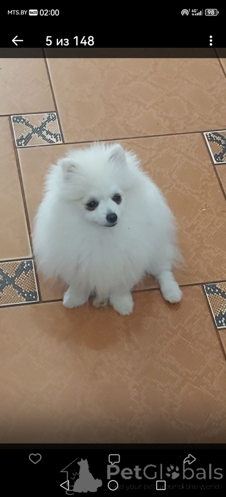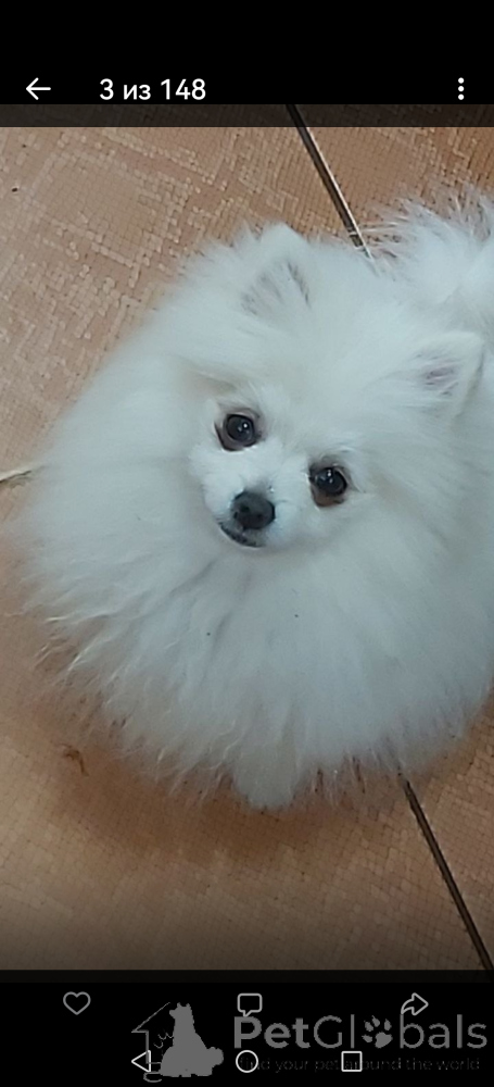 Замечательный малыш померанского шпица практически белого окраса(айс крем) .6 месяцев.Вес на данный момент 2кг. 100 грамм .Счас он в линьке(пырзик). Можно увидеть маму и папу.Привит по возрасту,обработан симпарикой, заведен ветеринарный паспорт.Очень ласковый и игривый, контактный.Приучен к пелёнке ,гуляет с удовольствием на улице.Безумно контактный дружит с котом и другими животными.