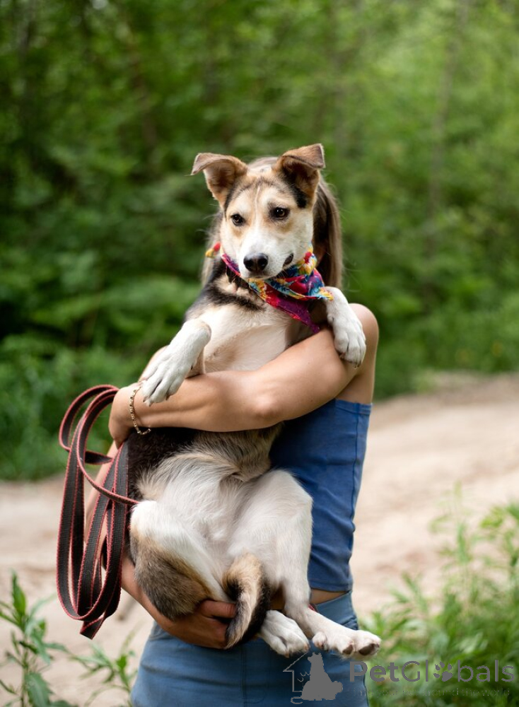 Она трогательная и наблюдательная, с тонким внутренним миром. Не шумная, не резкая — рядом с ней спокойно. Она дружит с собаками, ориентируется на них, учится ходить на поводке и быть частью большой жизни.